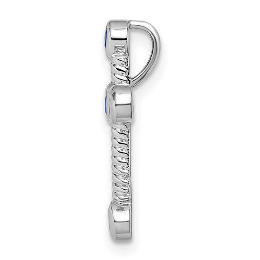 14k w/Rhodium Lab Created Sapphire and Diamond Cross Slide