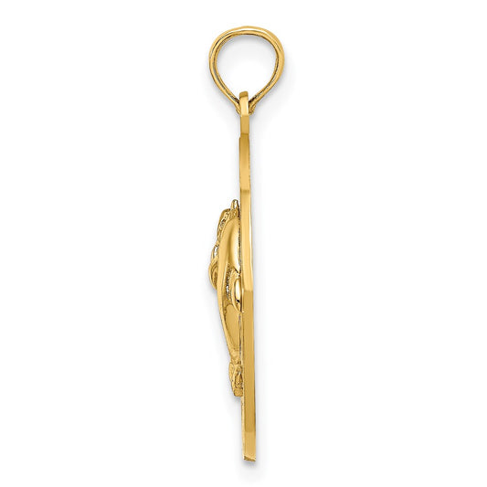 14K Polished and Textrued Open Mouth Dolphin Charm