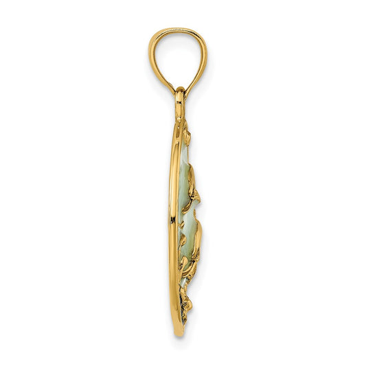 14K Green Enameled Sea Turtle Pendant
