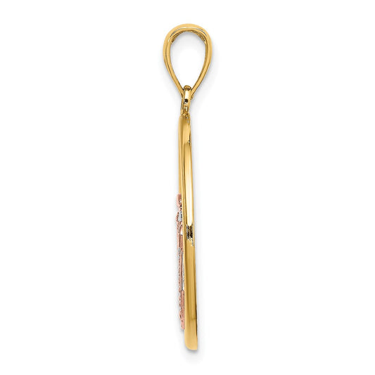 14K Two-tone w/White Rhodium Scallop Shell In Circle Charm