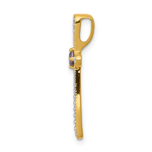 14k Diamond and Amethyst Polished Cross Chain Slide