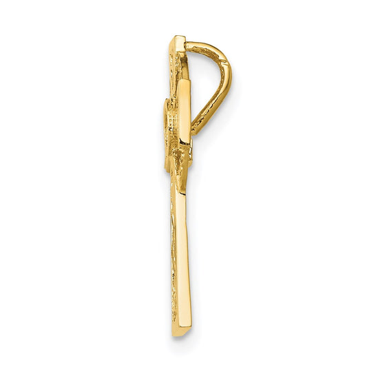 14K Two-tone Polished Filigree Vertical Hearts Chain Slide