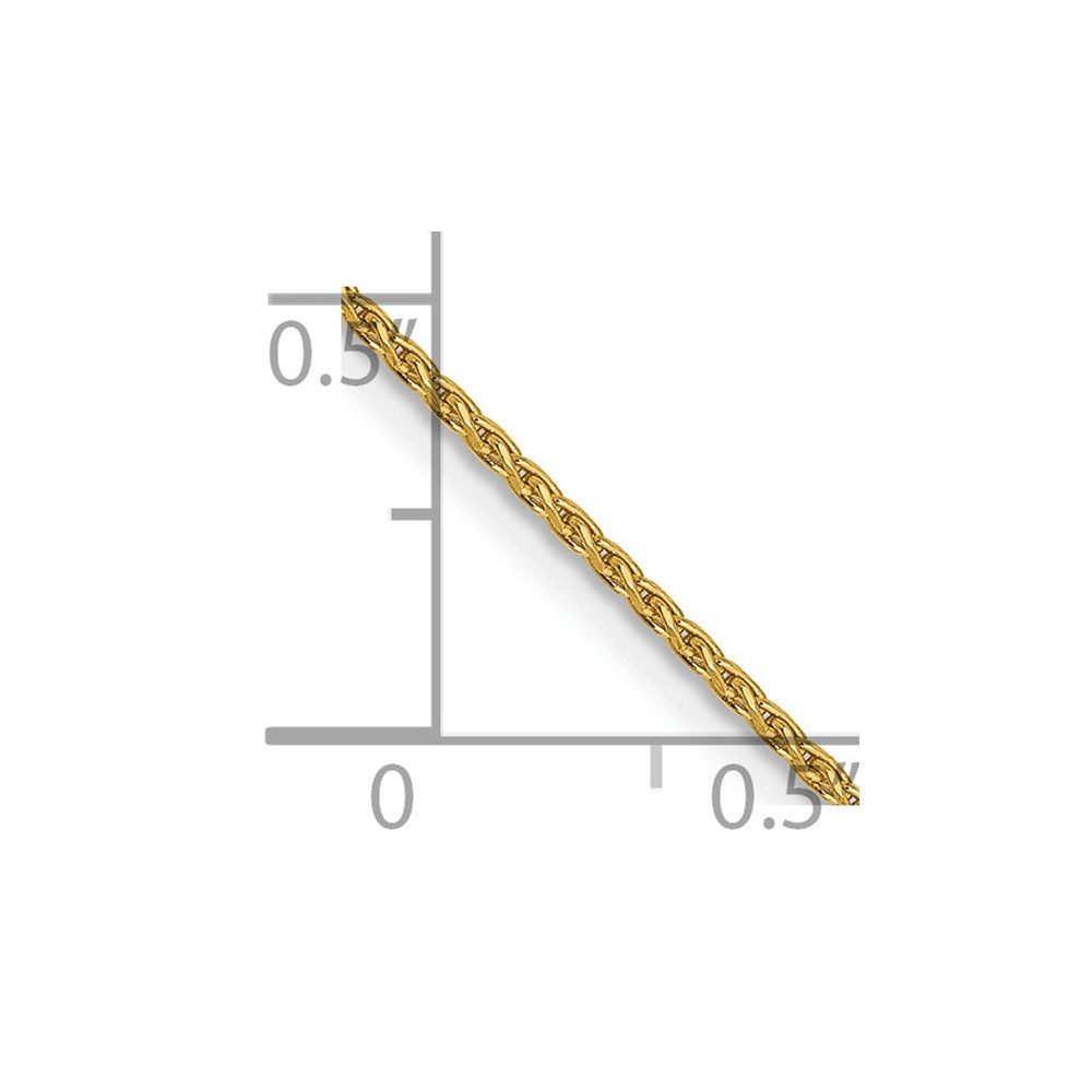 Material: Primary - Purity:14K|Finish:Polished|Length of Item:14 in|Chain Length:14 in|Chain Type:Spiga (Wheat)|Chain Width:1 mm|Clasp /Connector:Lobster|Feature:Solid|Manufacturing Process:Extruded|Material: Primary:Gold|Width of Item:1 mm|Product Type:Jewelry|Jewelry Type:Necklaces|Sold By Unit:Each|Necklace Type:Chains|Gender:Women's|Texture:Diamond-cut|Profile Type:Round|Material: Primary - Color:Yellow|Chain Type 2:Pendant