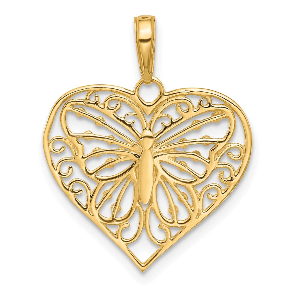14K and White Rhodium D/C Butterfly Heart Pendant