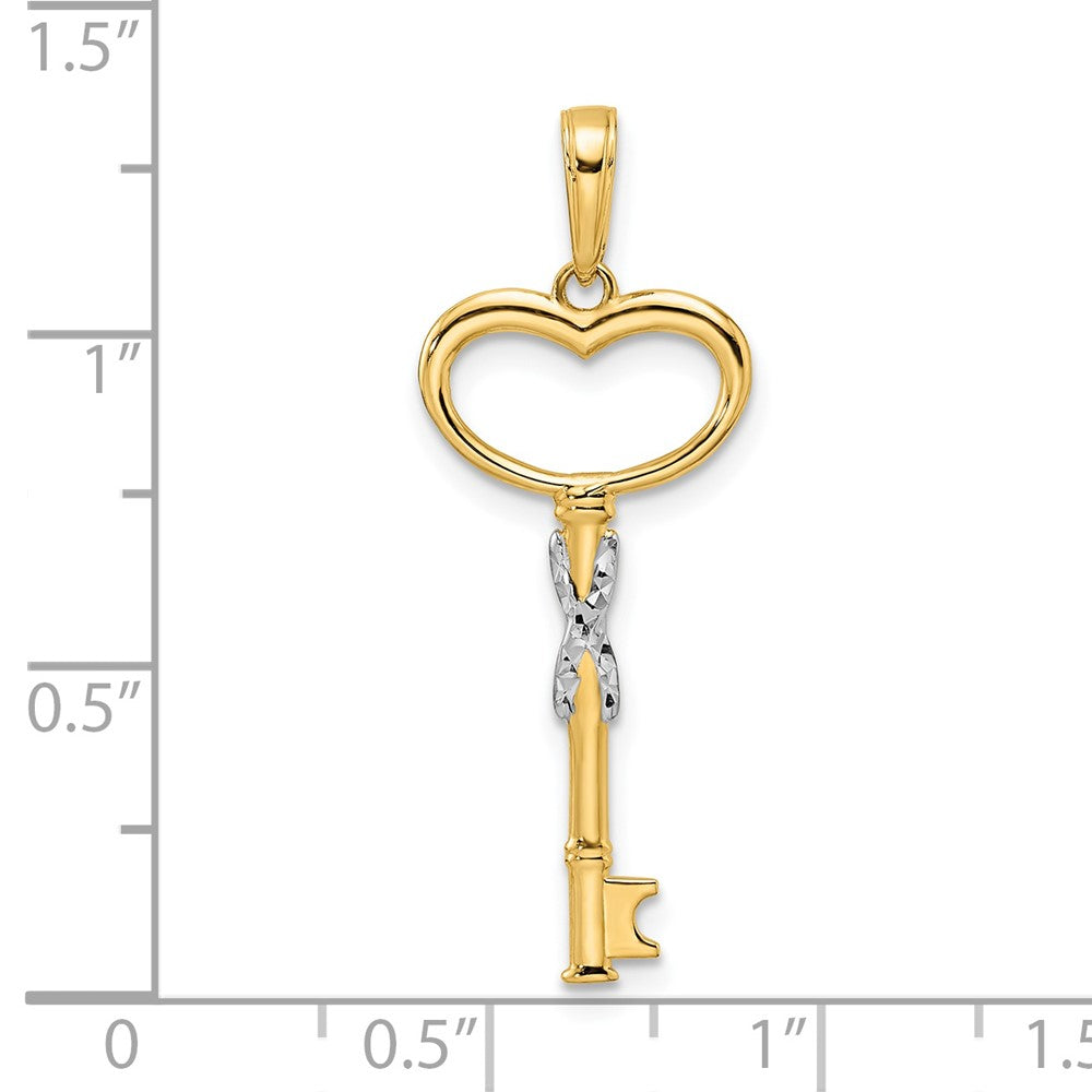 14k and White Rhodium Diamiond-cut Heart Key Pendant