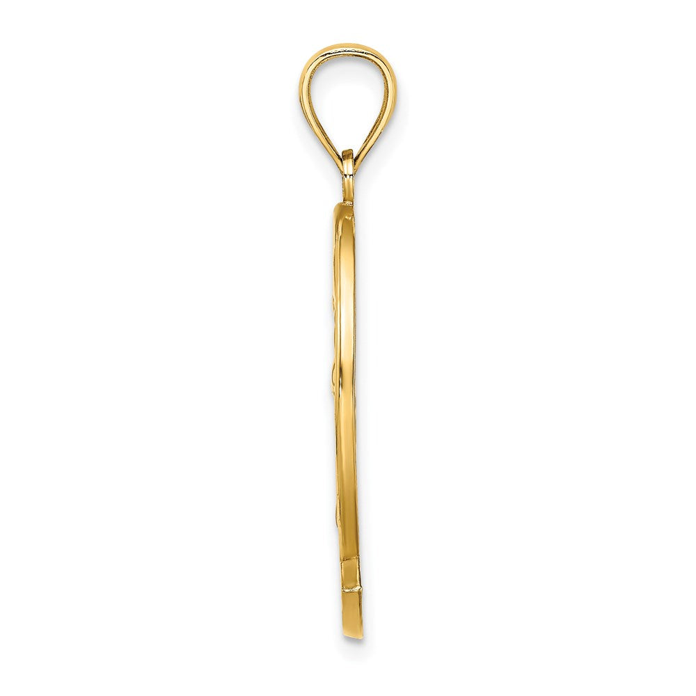 Material: Primary - Purity:14K|Finish:Polished|Length of Item:30.4 mm|Charm/Element Length:23.2 mm|Charm/Element Thickness:1.2 mm|Charm/Element Width:15.25 mm|Manufacturing Process:Casted|Material: Primary:Gold|Width of Item:15.25 mm|Product Type:Jewelry|Jewelry Type:Pendants & Charms|Sold By Unit:Each|Pendant/Charm Type:Themed|Bail Width:5 mm|Material: Primary - Color:Yellow|Bail Length:7 mm