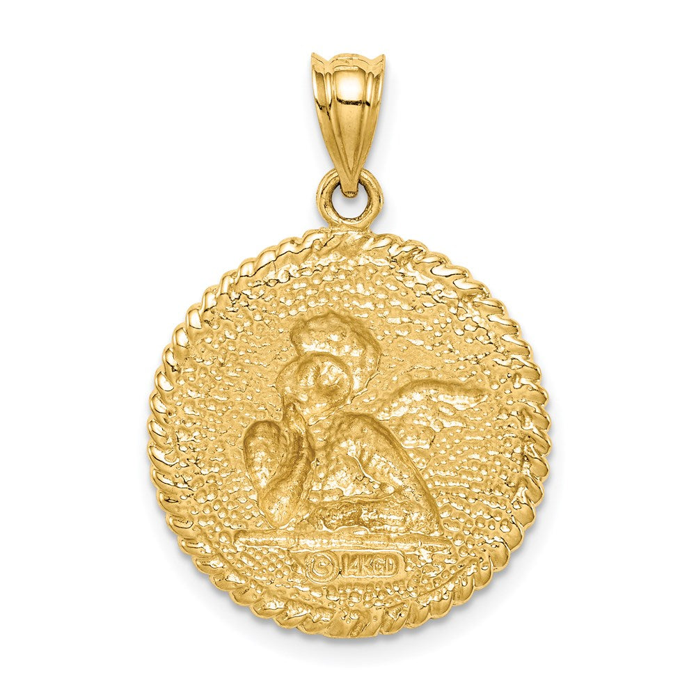 Material: Primary - Purity:14K|Finish:Polished & Brushed|Length of Item:27 mm|Feature:Solid|Manufacturing Process:Casted|Material: Primary:Gold|Product Type:Jewelry|Jewelry Type:Pendants & Charms|Sold By Unit:Each|Pendant/Charm Type:Themed|Profile Type:Concave|Material: Primary - Color:Yellow|Bail Length:6.3 mm
