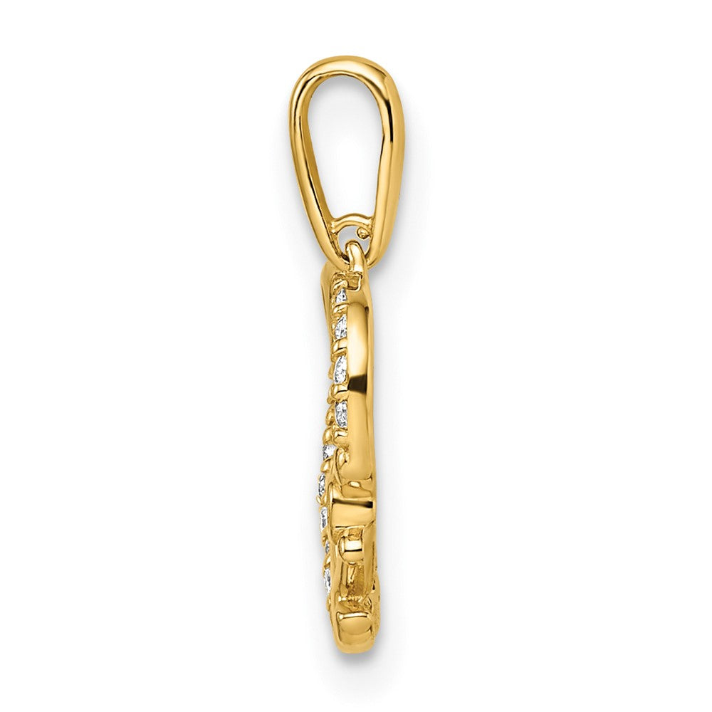 Material: Primary - Purity:14K|Finish:Polished|Length of Item:14.5 mm|Charm/Element Length:9.42 mm|Charm/Element Thickness:1.56 mm|Charm/Element Width:12.52 mm|Material: Primary:Gold|Thickness:< 1.5 mm|Width of Item:12.52 mm|Product Type:Jewelry|Jewelry Type:Pendants & Charms|Sold By Unit:Each|Pendant/Charm Type:Themed|Gender:Women's|Profile Type:Open Back|Bail Width:1.11 mm|Material: Primary - Color:Yellow|Bail Length:5.04 mm