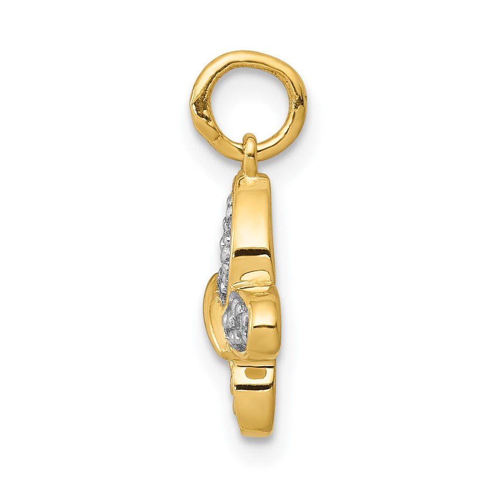 Material: Primary - Purity:14K|Finish:Polished|Stone Type_1:Diamond|Stone Quantity_1:8|Stone Weight_1:0.005 ct|Charm/Element Length:11.75 mm|Charm/Element Width:10.4 mm|Material: Primary:Gold|Stone Shape_1:Round|Stone Size_1:1 mm|Product Type:Jewelry|Jewelry Type:Pendants & Charms|Sold By Unit:Each|Pendant/Charm Type:Themed|Material: Primary - Color:Yellow|Stone Creation Method_1:Natural