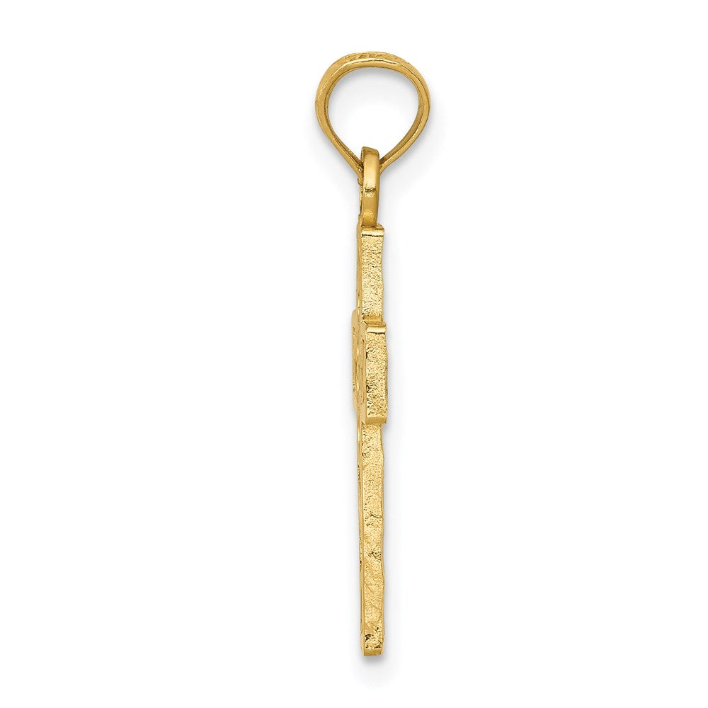 Material: Primary - Purity:14K|Length of Item:24 mm|Feature:Solid|Manufacturing Process:Casted|Material: Primary:Gold|Width of Item:11 mm|Product Type:Jewelry|Jewelry Type:Pendants & Charms|Sold By Unit:Each|Pendant/Charm Type:Themed|Texture:Diamond-cut|Profile Type:Flat Back|Bail Width:2.3 mm|Material: Primary - Color:Yellow|Bail Length:4.65 mm