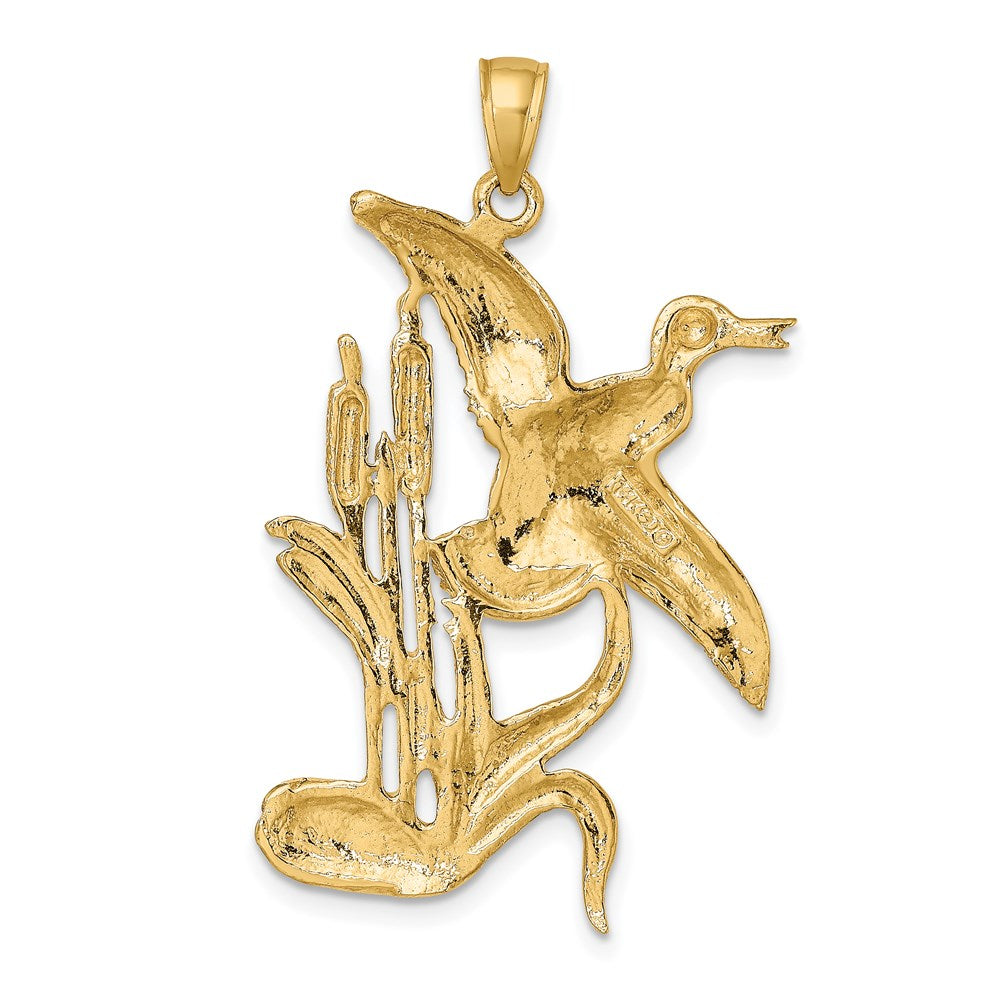 Material: Primary - Purity:14K|Finish:Polished|Length of Item:44.1 mm|Charm/Element Length:36.1 mm|Charm/Element Width:25.3 mm|Material: Primary:Gold|Width of Item:25.3 mm|Engravable:Not Recommended|Product Type:Jewelry|Jewelry Type:Pendants & Charms|Sold By Unit:Each|Pendant/Charm Type:Themed|Texture:Textured|Profile Type:Open Back|Bail Width:7 mm|Material: Primary - Color:Yellow|Bail Length:9 mm