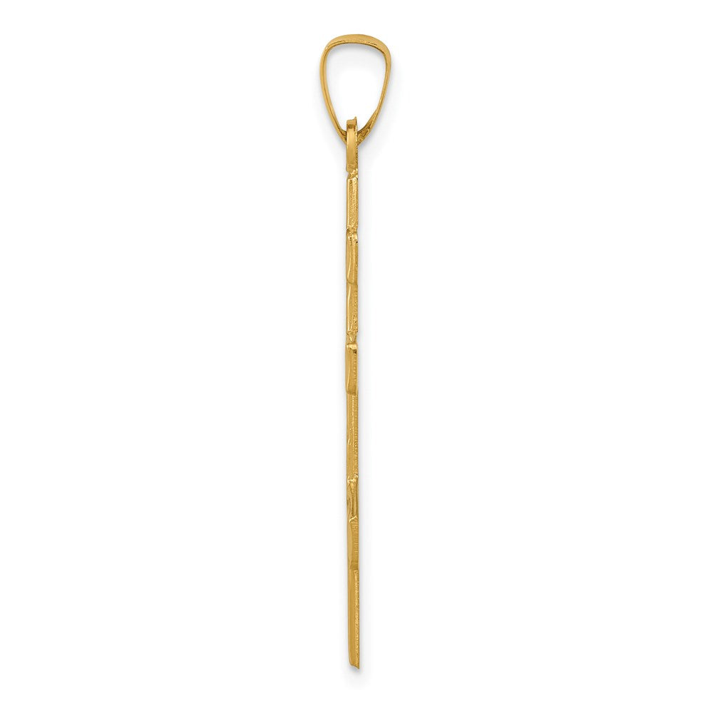 Material: Primary - Purity:14K|Finish:Polished|Length of Item:34 mm|Charm/Element Length:29 mm|Charm/Element Width:16 mm|Feature:Solid|Manufacturing Process:Die Struck|Material: Primary:Gold|Item Weight U/M:gm|Width of Item:16 mm|Product Type:Jewelry|Jewelry Type:Pendants & Charms|Sold By Unit:Each|Pendant/Charm Type:Themed|Texture:Textured|Material: Primary - Color:Yellow|Bail Length:5 mm