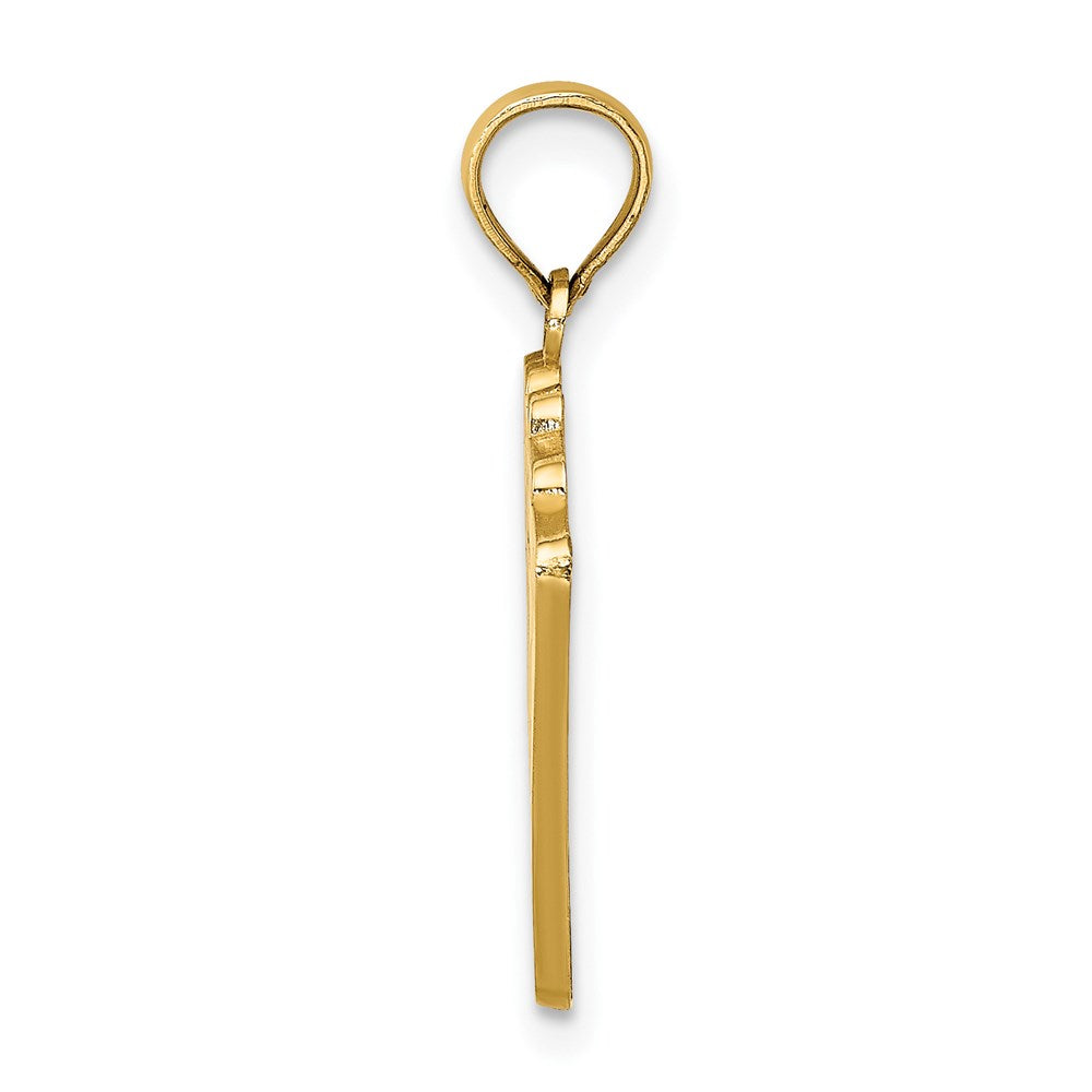 Material: Primary - Purity:14K|Finish:Polished|Length of Item:21 mm|Material: Accents:Enamel|Material: Accent Color 1:White|Charm/Element Length:15 mm|Charm/Element Width:19.55 mm|Material: Primary:Gold|Width of Item:19.55 mm|Engravable:Not Recommended|Product Type:Jewelry|Jewelry Type:Pendants & Charms|Sold By Unit:Each|Pendant/Charm Type:Themed|Profile Type:Textured Back|Bail Width:5 mm|Material: Primary - Color:Yellow|Bail Length:7 mm|Material: Accent Color 2:Black