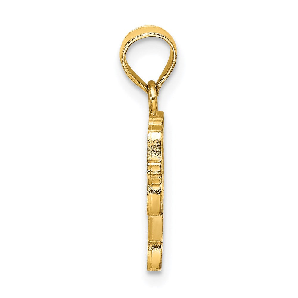Material: Primary - Purity:14K|Finish:Polished|Length of Item:13.3 mm|Material: Accents:Enamel|Material: Accent Color 1:Yellow|Charm/Element Length:13.3 mm|Charm/Element Thickness:1.2 mm|Charm/Element Width:25.3 mm|Manufacturing Process:Casted|Material: Primary:Gold|Width of Item:25.3 mm|Product Type:Jewelry|Jewelry Type:Pendants & Charms|Sold By Unit:Each|Pendant/Charm Type:Themed|Bail Width:5 mm|Material: Primary - Color:Yellow|Bail Length:7 mm|Material: Accent Color 2:Black