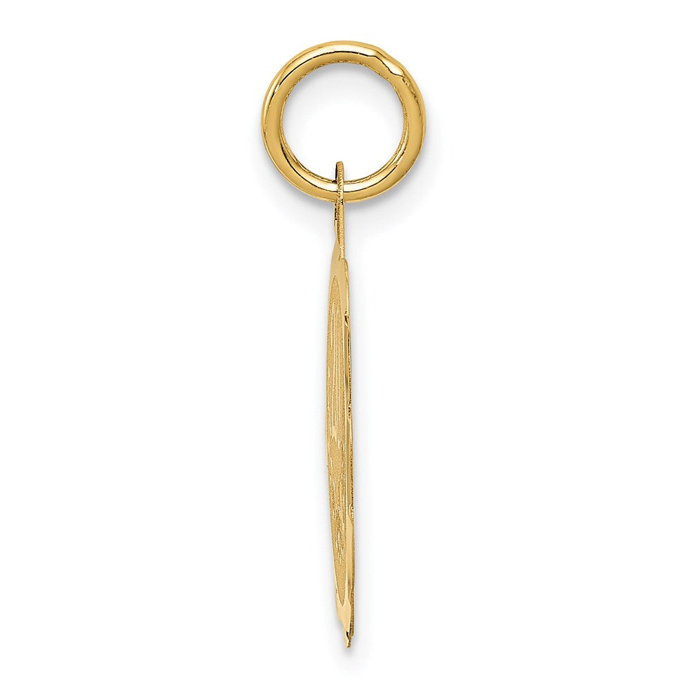 Material: Primary - Purity:14K|Finish:Polished & Laser Design|Length of Item:22 mm|Charm/Element Length:17 mm|Feature:Solid|Material: Primary:Gold|Width of Item:15 mm|Engravable:Yes|Product Type:Jewelry|Jewelry Type:Pendants & Charms|Sold By Unit:Each|Pendant/Charm Type:Themed|Texture:Textured|Profile Type:Flat Back|Material: Primary - Color:Yellow|Bail Length:4 mm|Number:20
