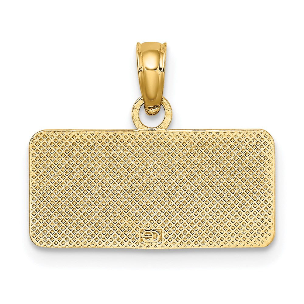 Material: Primary - Purity:14K|Finish:Polished|Length of Item:14.1 mm|Charm/Element Length:8.7 mm|Charm/Element Thickness:0.9 mm|Charm/Element Width:18 mm|Feature:Solid|Manufacturing Process:Casted|Material: Primary:Gold|Width of Item:18 mm|Product Type:Jewelry|Jewelry Type:Pendants & Charms|Sold By Unit:Each|Pendant/Charm Type:Themed|Texture:Textured|Profile Type:Textured Back|Bail Width:4.5 mm|Material: Primary - Color:Yellow|Bail Length:5 mm