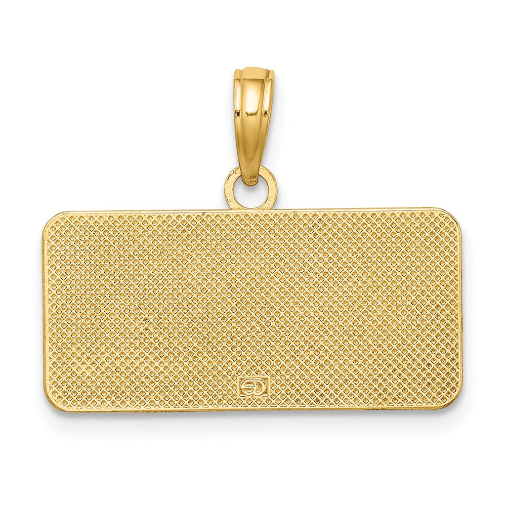 Material: Primary - Purity:14K|Finish:Polished|Length of Item:17.8 mm|Charm/Element Length:11.3 mm|Charm/Element Thickness:1 mm|Charm/Element Width:23.35 mm|Feature:Solid|Manufacturing Process:Casted|Material: Primary:Gold|Width of Item:23.35 mm|Product Type:Jewelry|Jewelry Type:Pendants & Charms|Sold By Unit:Each|Pendant/Charm Type:Themed|Texture:Textured|Profile Type:Textured Back|Bail Width:5 mm|Material: Primary - Color:Yellow|Bail Length:7 mm