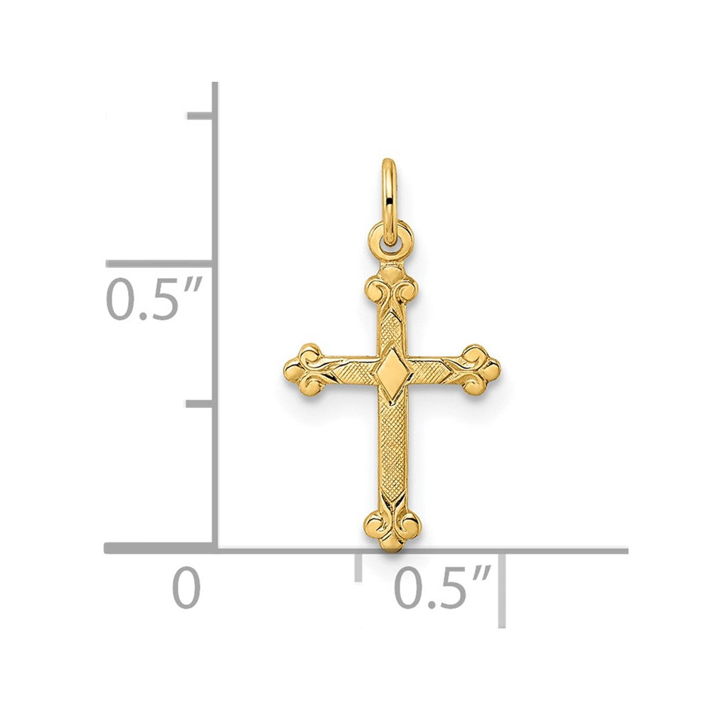 14k Polished and Textured Solid Diamond Shape Cross Pendant