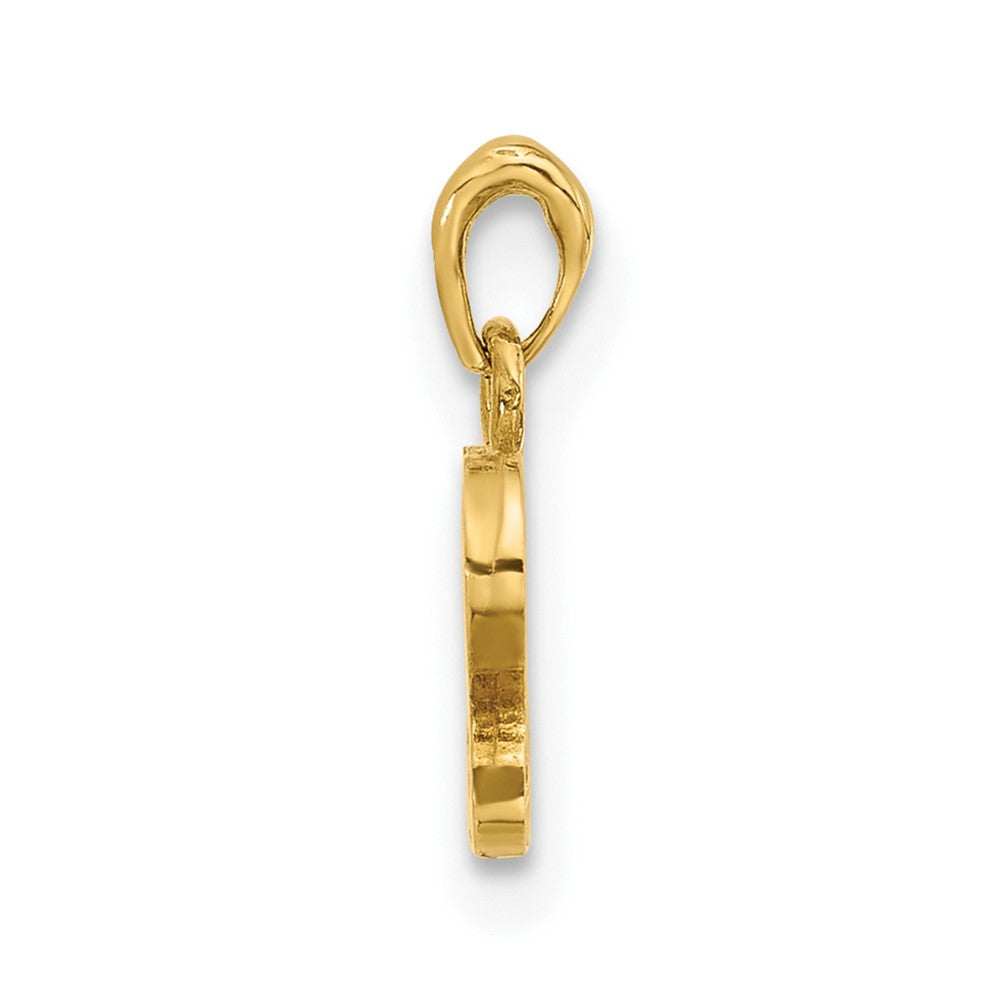 Material: Primary - Purity:14K|Finish:Polished|Stone Type_1:Cubic Zirconia (CZ)|Stone Color_1:White|Stone Quantity_1:10|Length of Item:13 mm|Charm/Element Length:9.6 mm|Charm/Element Thickness:1.1 mm|Charm/Element Width:8.9 mm|Material: Primary:Gold|Stone Shape_1:Round|Stone Treatment_1:Synthetic|Thickness:1.1 mm|Width of Item:8.9 mm|Engravable:Not Recommended|Product Type:Jewelry|Jewelry Type:Pendants & Charms|Sold By Unit:Each|Pendant/Charm Type:Themed|Gender:Unisex|Profile Type:Open Back|Bail Width:1.25 mm|Material: Primary - Color:Yellow|Bail Length:4.4 mm|Stone Creation Method_1:Synthetic|Bail (Inside) Length:1.2|Bail (Inside) Width:0.7|Bail (Inside) Width U/M:mm|Bail (Inside) Length U/M:mm