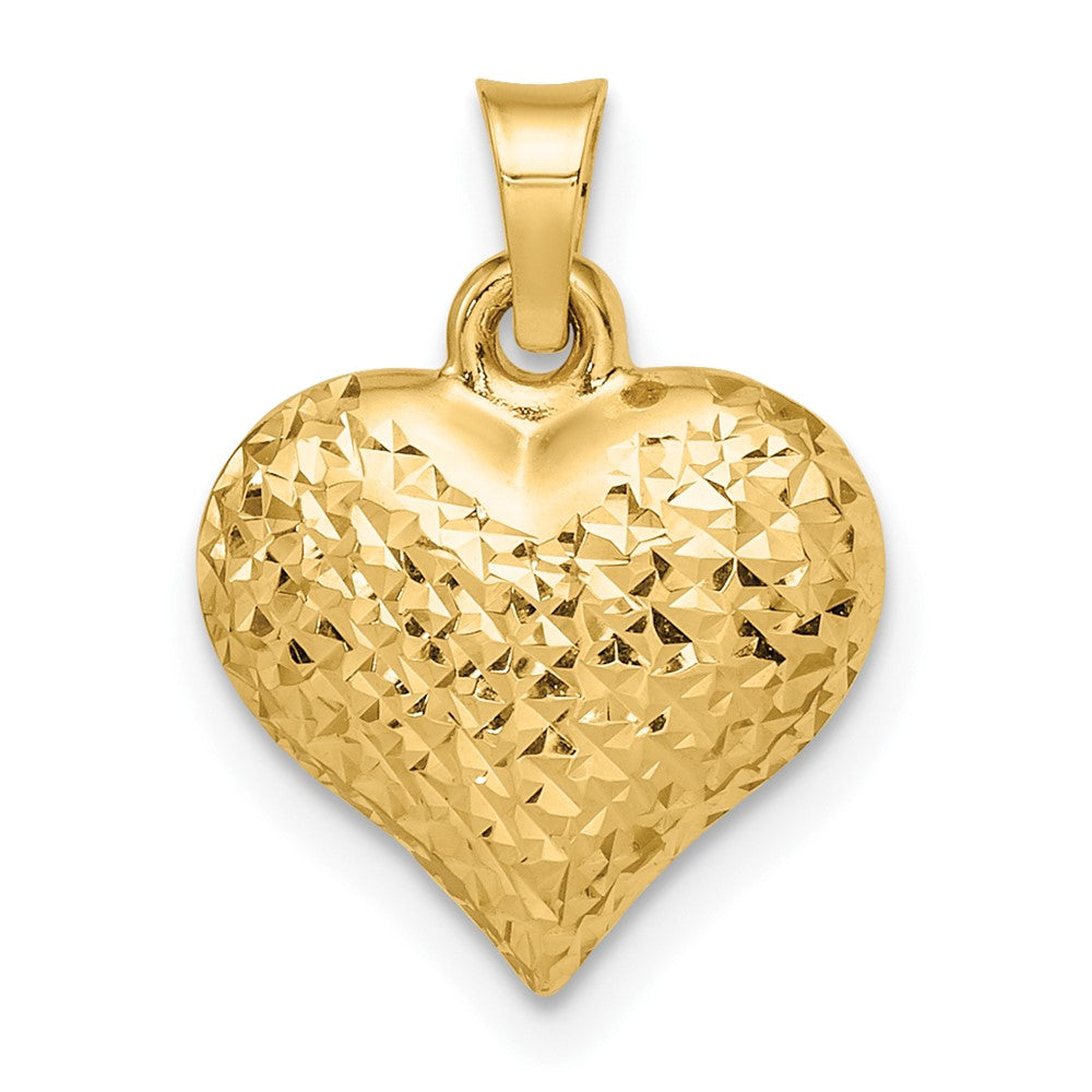 14k Polished Diamond-cut Large Puffed Heart Pendant