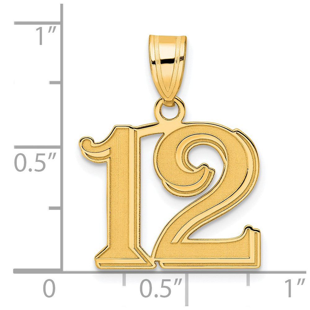 Material: Primary - Purity:14K|Finish:Polished|Manufacturing Process:Laser Etched|Material: Primary:Gold|Product Type:Jewelry|Jewelry Type:Pendants & Charms|Sold By Unit:Each|Texture:Satin|Material: Primary - Color:Yellow|Relative Size:Large|Number:12