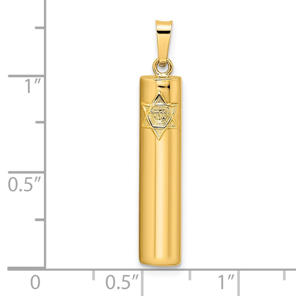 14k Polished Hollow Mezuzah w/Star of David Pendant