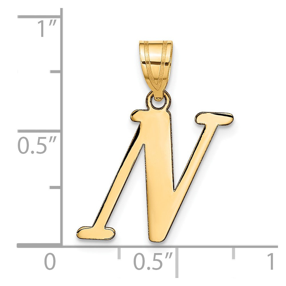 Material: Primary - Purity:14K|Finish:Polished|Manufacturing Process:Laser Cut|Material: Primary:Gold|Product Type:Jewelry|Jewelry Type:Pendants & Charms|Sold By Unit:Each|Material: Primary - Color:Yellow|Relative Size:Large|Letter:N