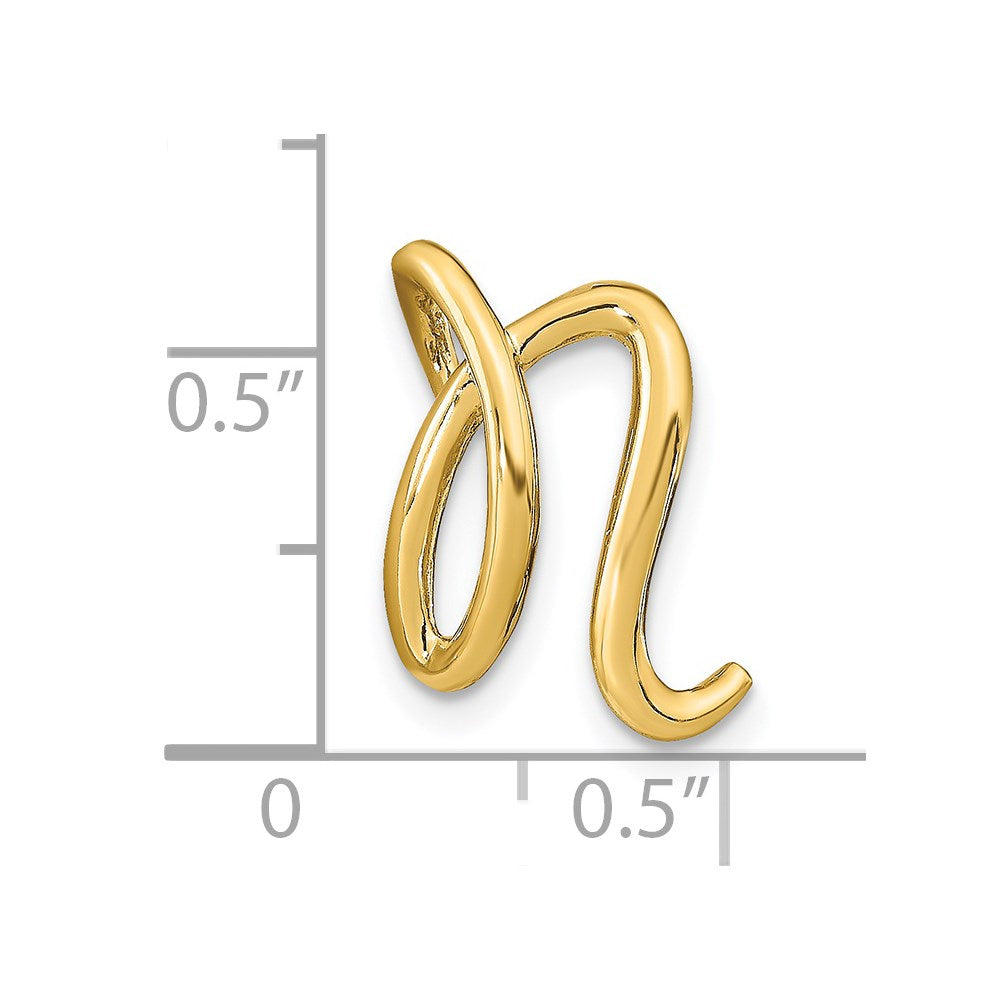 Material: Primary - Purity:14K|Finish:Polished|Manufacturing Process:Casted|Material: Primary:Gold|Product Type:Jewelry|Jewelry Type:Pendants & Charms|Sold By Unit:Each|Bail Width:5 mm|Material: Primary - Color:Yellow|Bail Length:7 mm|Relative Size:Large|Letter:N