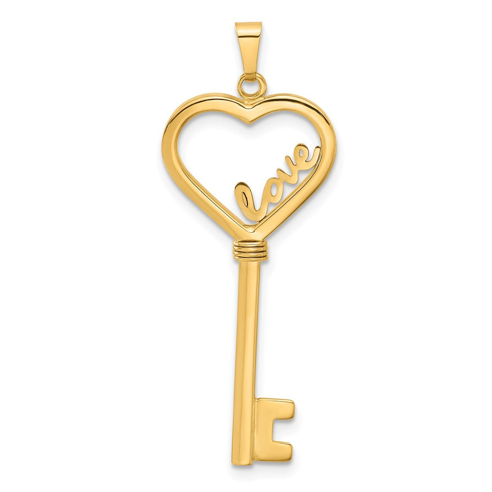 Material: Primary - Purity:14K|Finish:Polished|Length of Item:41.1 mm|Charm/Element Length:35 mm|Charm/Element Thickness:3.3 mm|Charm/Element Width:16 mm|Material: Primary:Gold|Width of Item:16 mm|Product Type:Jewelry|Jewelry Type:Pendants & Charms|Sold By Unit:Each|Pendant/Charm Type:Themed|Gender:Unisex|Profile Type:Open Back|Bail Width:2.5 mm|Material: Primary - Color:Yellow|Bail Length:5.8 mm