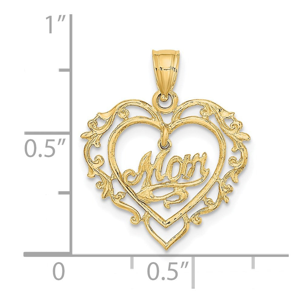 14K Polished MOM Dangle in Fancy Heart Pendant