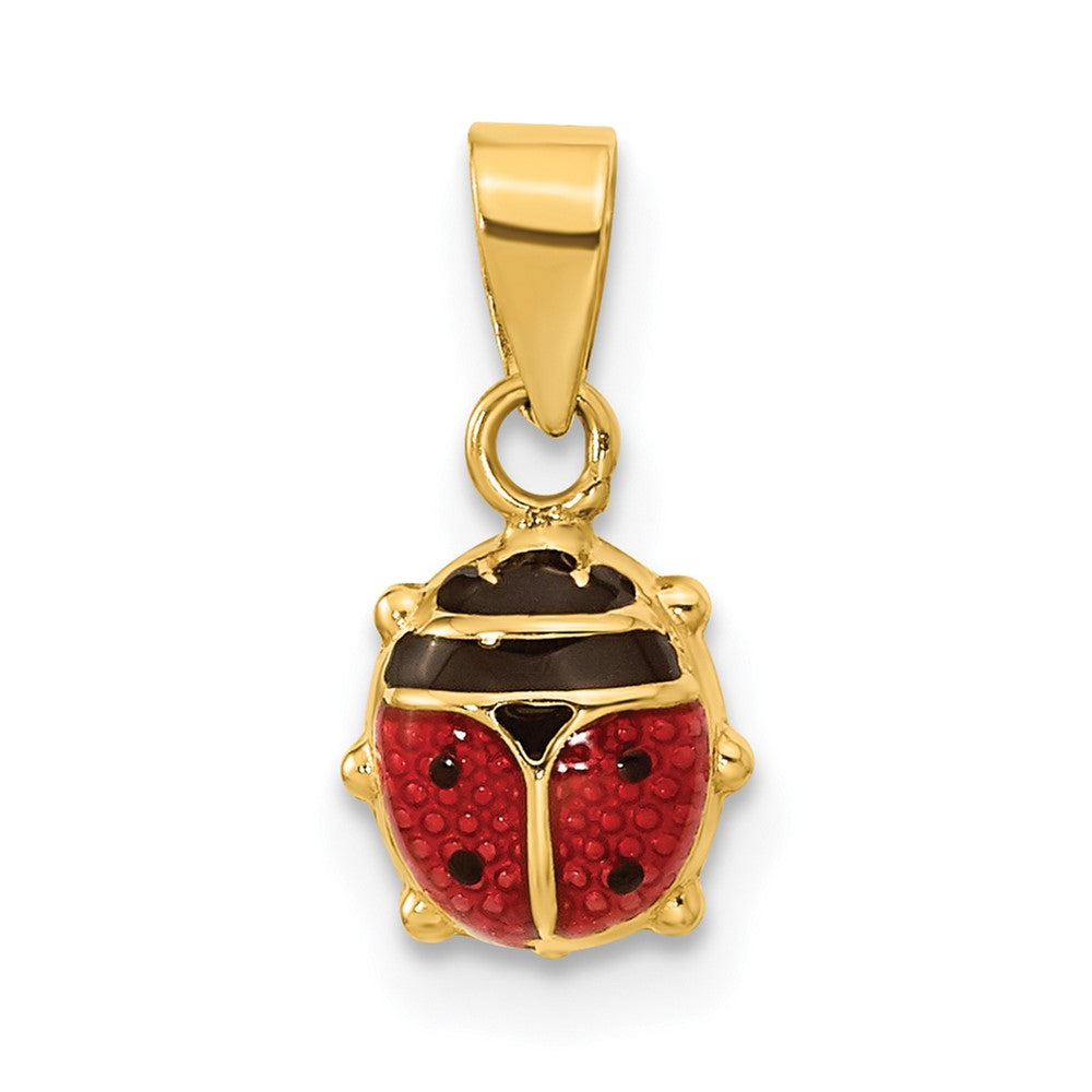 Material: Primary - Purity:14K|Finish:Polished|Length of Item:8 mm|Material: Accents:Enamel|Material: Accent Color 1:Red|Charm/Element Length:8 mm|Charm/Element Width:7 mm|Feature:Semi-Solid|Material: Primary:Gold|Item Weight U/M:gm|Width of Item:7 mm|Engravable:Not Recommended|Product Type:Jewelry|Jewelry Type:Pendants & Charms|Sold By Unit:Each|Pendant/Charm Type:Themed|Gender:Women's|Profile Type:Flat Back|Bail Width:3 mm|Material: Primary - Color:Yellow|Bail Length:5 mm|Material: Accent Color 2:Black