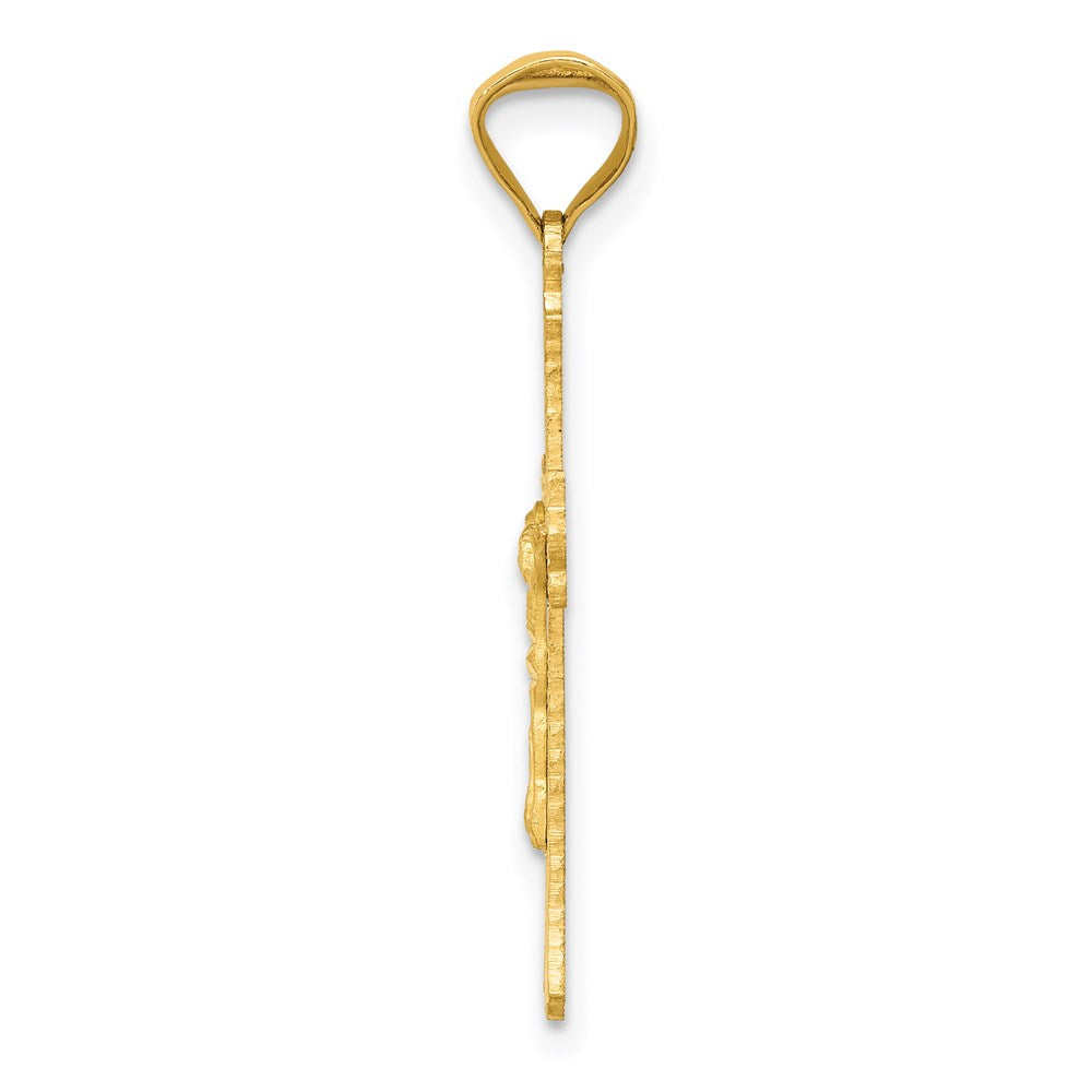 Material: Primary - Purity:14K|Length of Item:27.5 mm|Charm/Element Width:14.5 mm|Feature:Semi-Solid|Manufacturing Process:Die Struck|Material: Primary:Gold|Width of Item:14.5 mm|Product Type:Jewelry|Jewelry Type:Pendants & Charms|Sold By Unit:Each|Material: Primary - Color:Yellow
