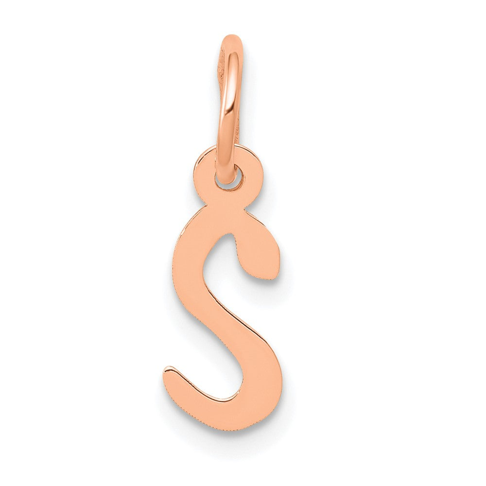 Material: Primary - Purity:14K|Finish:Polished|Manufacturing Process:Laser Cut|Material: Primary:Gold|Product Type:Jewelry|Jewelry Type:Pendants & Charms|Sold By Unit:Each|Material: Primary - Color:Rose|Relative Size:Small|Letter:S