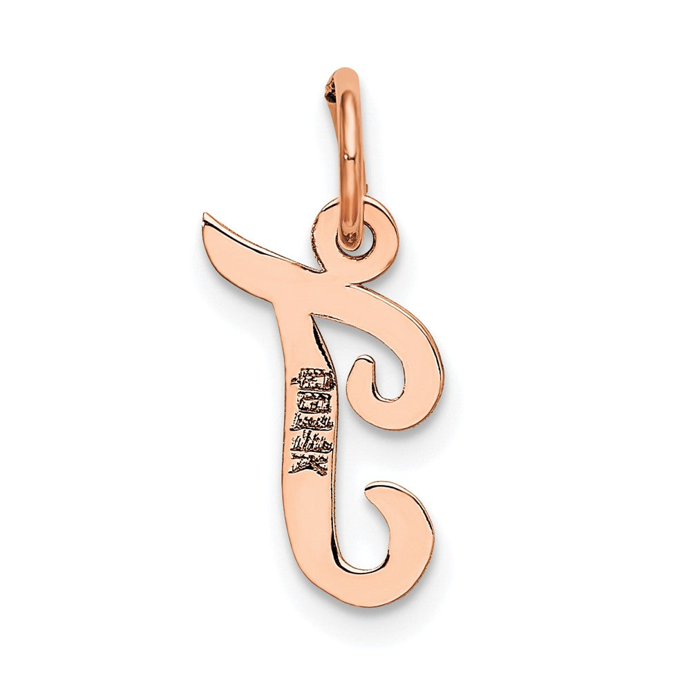 14k Rose Gold Small Script Letter T Initial Charm