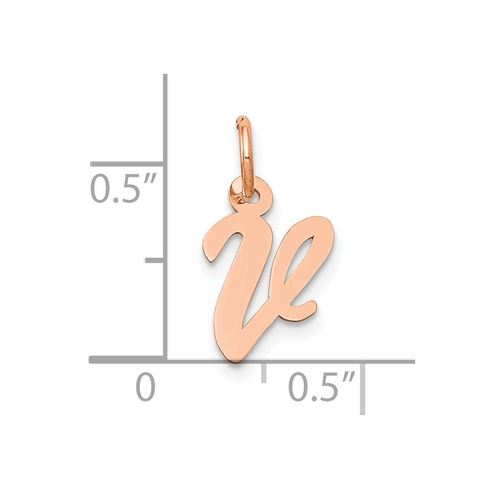 Material: Primary - Purity:14K|Finish:Polished|Charm/Element Thickness:0.4 mm|Feature:Personalized|Material: Primary:Gold|Engravable:Not Recommended|Product Type:Jewelry|Jewelry Type:Pendants & Charms|Sold By Unit:Each|Pendant/Charm Type:Themed|Gender:Unisex|Profile Type:Flat Back|Bail Width:0.9 mm|Material: Primary - Color:Rose|Bail Length:5.8 mm|Relative Size:Small|Letter:V|Bail (Inside) Length:2.2|Bail (Inside) Width:2.2|Bail (Inside) Width U/M:mm|Bail (Inside) Length U/M:mm