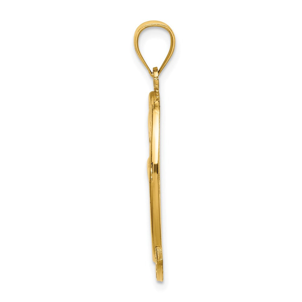 Material: Primary - Purity:14K|Finish:Polished|Length of Item:29.95 mm|Charm/Element Length:23.15 mm|Charm/Element Thickness:1.4 mm|Charm/Element Width:15.3 mm|Manufacturing Process:Casted|Material: Primary:Gold|Width of Item:15.3 mm|Product Type:Jewelry|Jewelry Type:Pendants & Charms|Sold By Unit:Each|Pendant/Charm Type:Themed|Bail Width:5 mm|Material: Primary - Color:Yellow|Bail Length:7 mm