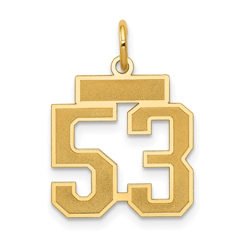 Material: Primary - Purity:14K|Finish:Brushed|Manufacturing Process:Laser Cut|Material: Primary:Gold|Product Type:Jewelry|Jewelry Type:Pendants & Charms|Sold By Unit:Each|Pendant/Charm Type:Themed|Texture:Satin|Material: Primary - Color:Yellow|Relative Size:Small|Number:53