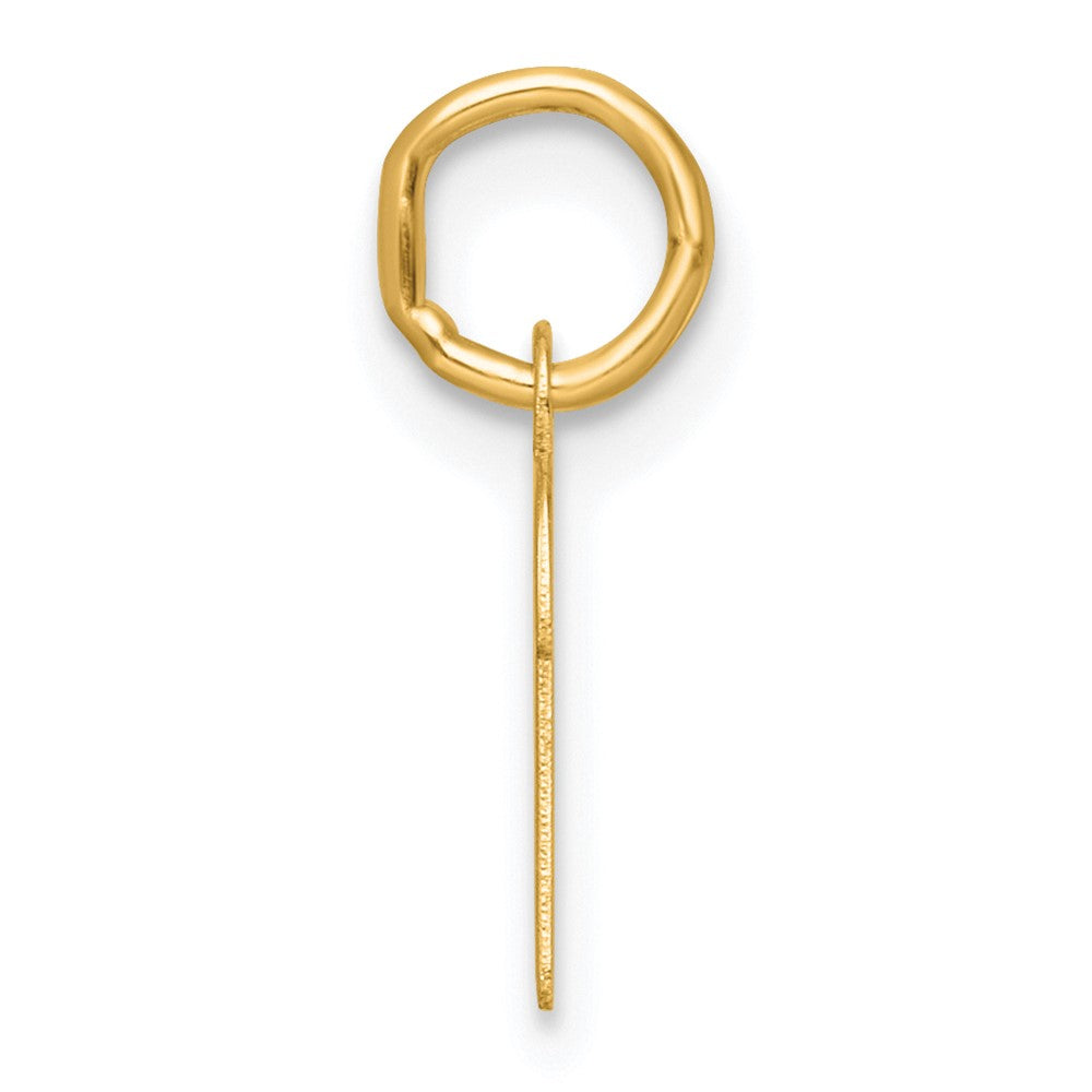 Material: Primary - Purity:14K|Finish:Polished|Length of Item:15.5 mm|Charm/Element Length:11.75 mm|Charm/Element Thickness:0.35 mm|Charm/Element Width:6.3 mm|Feature:Personalized|Material: Primary:Gold|Engravable:Not Recommended|Product Type:Jewelry|Jewelry Type:Pendants & Charms|Sold By Unit:Each|Pendant/Charm Type:Themed|Gender:Unisex|Profile Type:Flat Back|Bail Width:0.9 mm|Material: Primary - Color:Yellow|Bail Length:5.8 mm|Relative Size:Extra Small|Letter:P|Bail (Inside) Length:2.2|Bail (Inside) Width:2.2|Bail (Inside) Width U/M:mm|Bail (Inside) Length U/M:mm