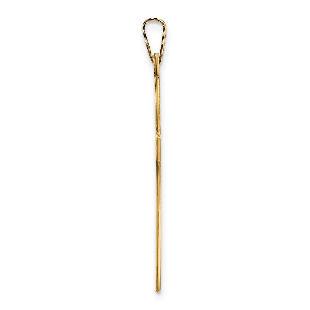 Material: Primary - Purity:14K|Finish:Polished & Laser Design|Length of Item:36 mm|Charm/Element Length:31 mm|Charm/Element Width:19 mm|Feature:Solid|Material: Primary:Gold|Width of Item:19 mm|Product Type:Jewelry|Jewelry Type:Pendants & Charms|Sold By Unit:Each|Pendant/Charm Type:Themed|Profile Type:Flat Back|Bail Width:3.25 mm|Material: Primary - Color:Yellow|Bail Length:6.75 mm