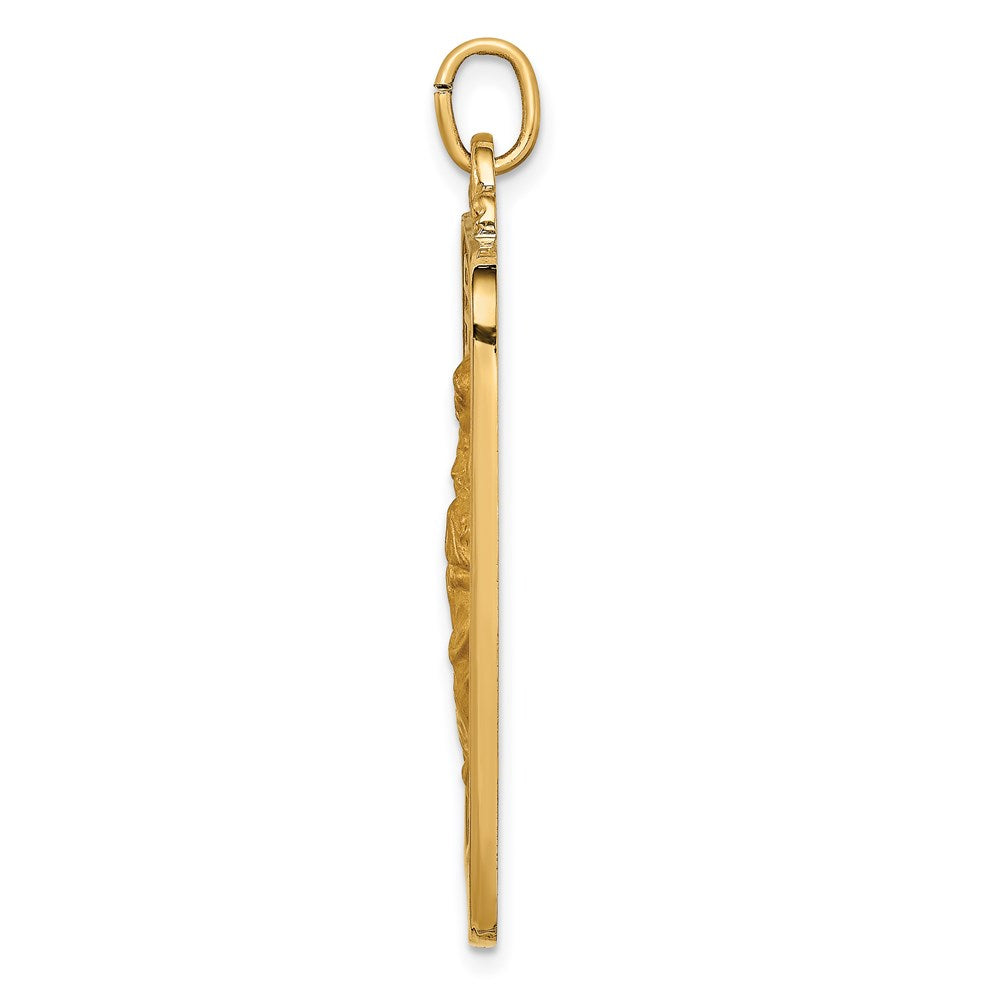 Material: Primary - Purity:14K|Finish:Polished|Length of Item:39.5 mm|Charm/Element Length:39.5 mm|Charm/Element Width:25 mm|Feature:Solid|Manufacturing Process:Die Struck|Material: Primary:Gold|Width of Item:25 mm|Product Type:Jewelry|Jewelry Type:Pendants & Charms|Sold By Unit:Each|Pendant/Charm Type:Themed|Texture:Satin|Profile Type:Flat Back|Material: Primary - Color:Yellow