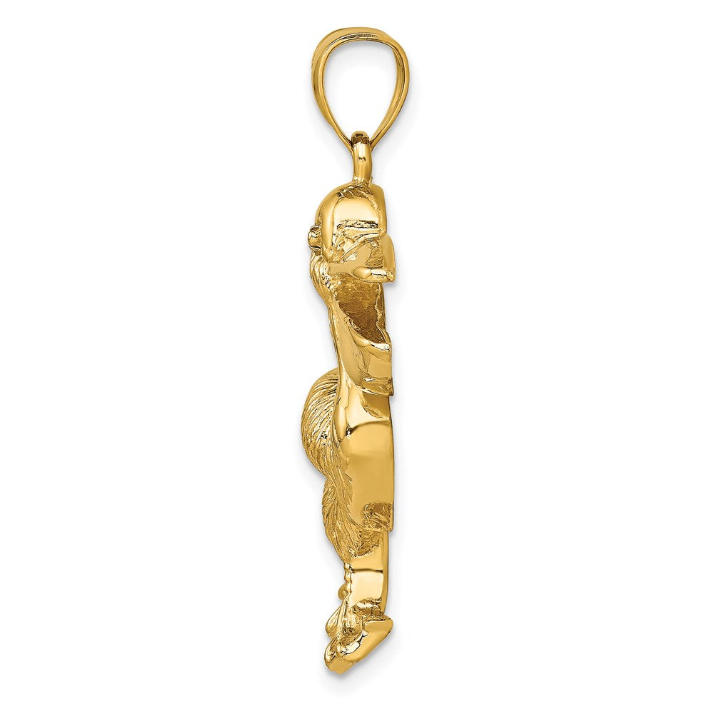 Material: Primary - Purity:14K|Finish:Polished|Length of Item:36 mm|Charm/Element Length:30.3 mm|Charm/Element Thickness:4.3 mm|Charm/Element Width:36.7 mm|Material: Primary:Gold|Width of Item:36.7 mm|Product Type:Jewelry|Jewelry Type:Pendants & Charms|Sold By Unit:Each|Pendant/Charm Type:Themed|Texture:Textured|Bail Width:7 mm|Material: Primary - Color:Yellow|Bail Length:9 mm