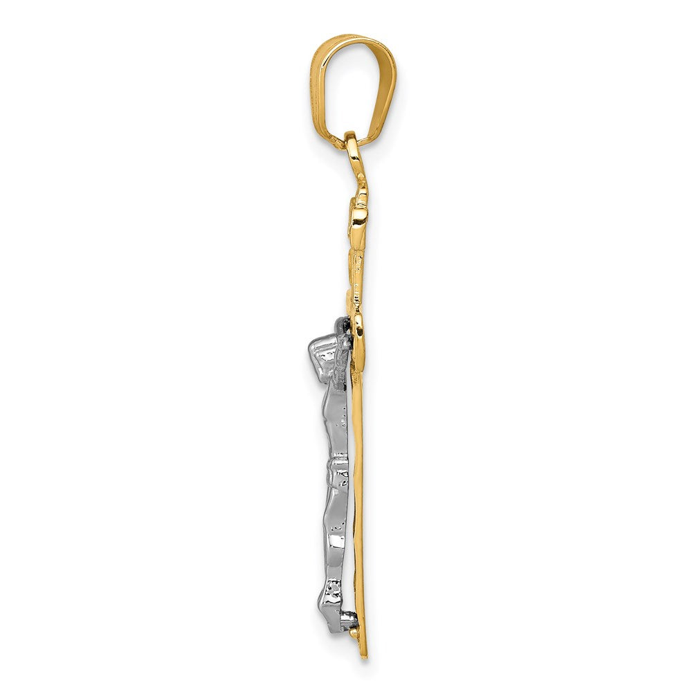 14K Two-tone Diamond-cut Lattice Cross w/Crucifix Pendant