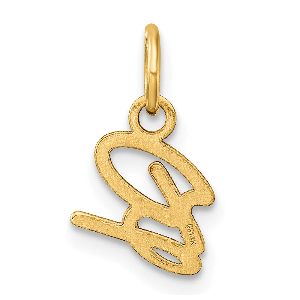 Material: Primary - Purity:14K|Finish:Polished|Length of Item:15.6 mm|Charm/Element Length:11.4 mm|Charm/Element Thickness:0.4 mm|Charm/Element Width:9 mm|Feature:Personalized|Material: Primary:Gold|Engravable:Not Recommended|Product Type:Jewelry|Jewelry Type:Pendants & Charms|Sold By Unit:Each|Pendant/Charm Type:Themed|Gender:Unisex|Profile Type:Flat Back|Bail Width:0.9 mm|Material: Primary - Color:Yellow|Bail Length:5.8 mm|Feature 2:Satin Back|Relative Size:Large|Letter:B|Bail (Inside) Length:2.4|Bail (Inside) Width:2.4|Bail (Inside) Width U/M:mm|Bail (Inside) Length U/M:mm