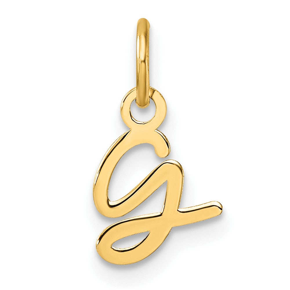 Material: Primary - Purity:14K|Finish:Polished|Length of Item:15.7 mm|Charm/Element Length:11.2 mm|Charm/Element Thickness:0.4 mm|Charm/Element Width:8.4 mm|Feature:Personalized|Material: Primary:Gold|Engravable:Not Recommended|Product Type:Jewelry|Jewelry Type:Pendants & Charms|Sold By Unit:Each|Pendant/Charm Type:Themed|Gender:Unisex|Profile Type:Flat Back|Bail Width:0.9 mm|Material: Primary - Color:Yellow|Bail Length:5.8 mm|Feature 2:Satin Back|Relative Size:Large|Letter:G|Bail (Inside) Length:2.4|Bail (Inside) Width:2.4|Bail (Inside) Width U/M:mm|Bail (Inside) Length U/M:mm
