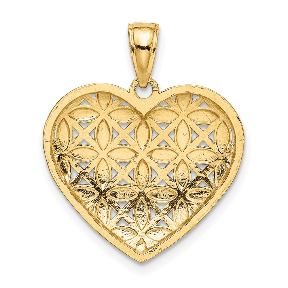 Material: Primary - Purity:14K|Finish:Polished|Length of Item:24.7 mm|Material: Accents:Rhodium|Plating:Rhodium|Material: Accent Color 1:White|Charm/Element Length:18.7 mm|Charm/Element Width:20.75 mm|Material: Primary:Gold|Width of Item:20.75 mm|Product Type:Jewelry|Jewelry Type:Pendants & Charms|Sold By Unit:Each|Pendant/Charm Type:Themed|Texture:Diamond-cut|Profile Type:Concave|Bail Width:5 mm|Material: Primary - Color:Yellow|Bail Length:7 mm