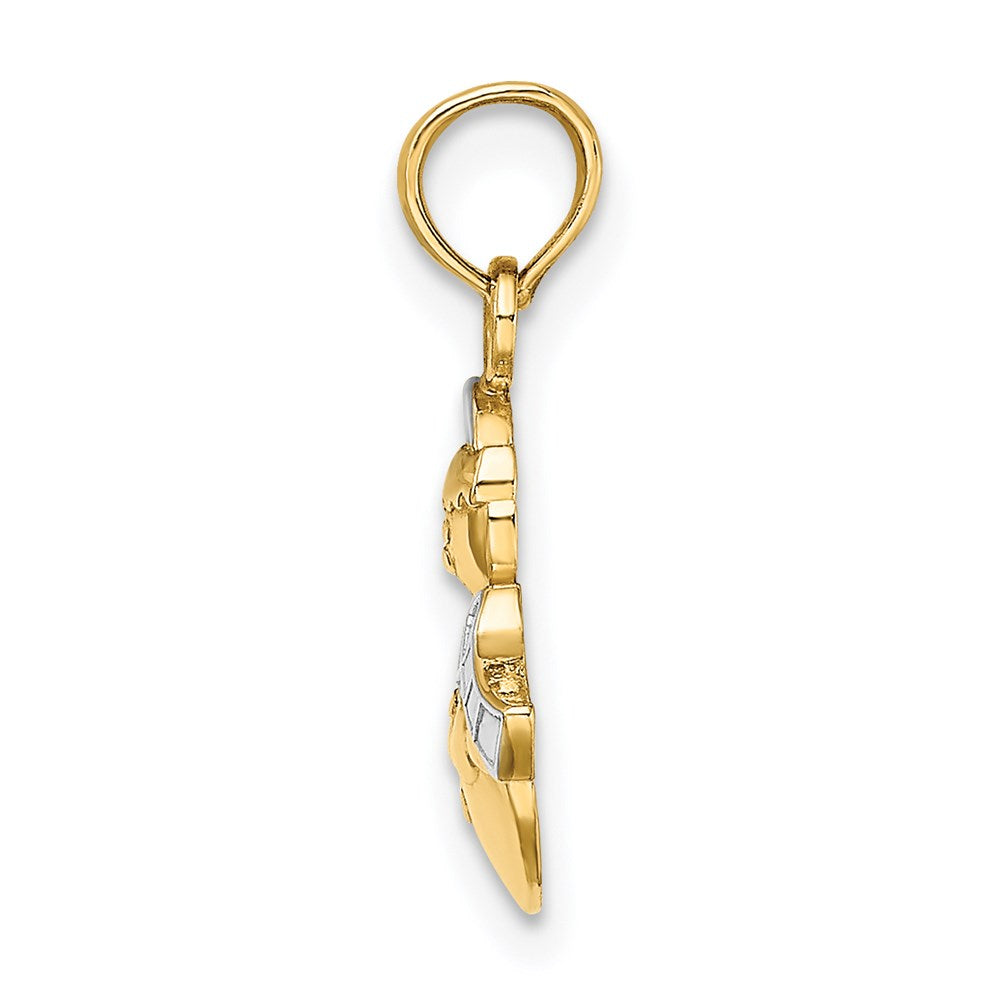 Material: Primary - Purity:14K|Length of Item:15.6 mm|Material: Accents:Rhodium|Material: Accent Color 1:White|Charm/Element Length:11.6 mm|Charm/Element Width:9.2 mm|Feature:3D|Material: Primary:Gold|Width of Item:9.2 mm|Product Type:Jewelry|Jewelry Type:Pendants & Charms|Sold By Unit:Each|Pendant/Charm Type:Themed|Profile Type:Concave|Bail Width:4.5 mm|Material: Primary - Color:Yellow|Bail Length:5 mm