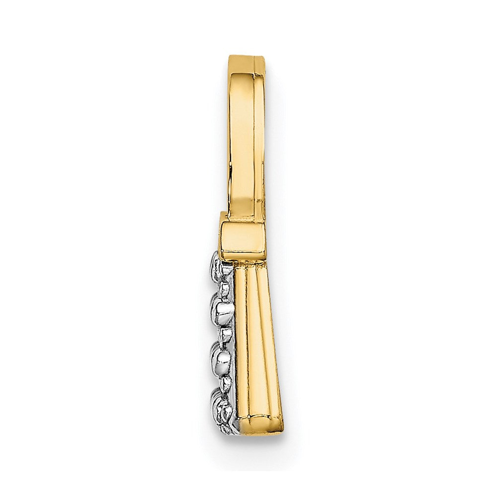 Material: Primary - Purity:14K|Finish:Polished|Length of Item:12.9 mm|Material: Accents:Rhodium|Material: Accent Color 1:White|Charm/Element Length:12.9 mm|Charm/Element Thickness:2.3 mm|Charm/Element Width:9.22 mm|Material: Primary:Gold|Product Type:Jewelry|Jewelry Type:Pendants & Charms|Sold By Unit:Each|Pendant/Charm Type:Themed|Texture:Textured|Profile Type:Concave|Bail Width:4.5 mm|Material: Primary - Color:Yellow|Bail Length:5 mm|Feature 2:Will Not Fit Omega