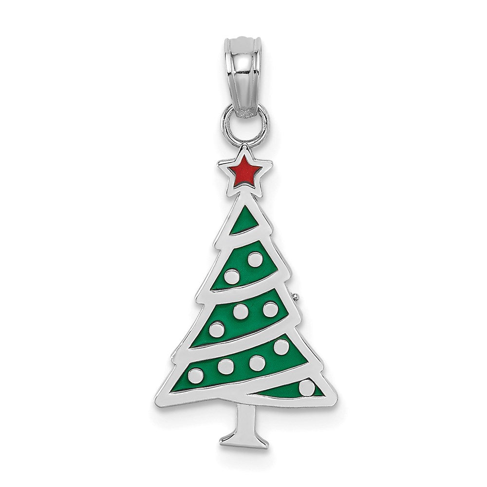 14K White Gold Enamel Green Christmas Tree w/ Red Star Charm