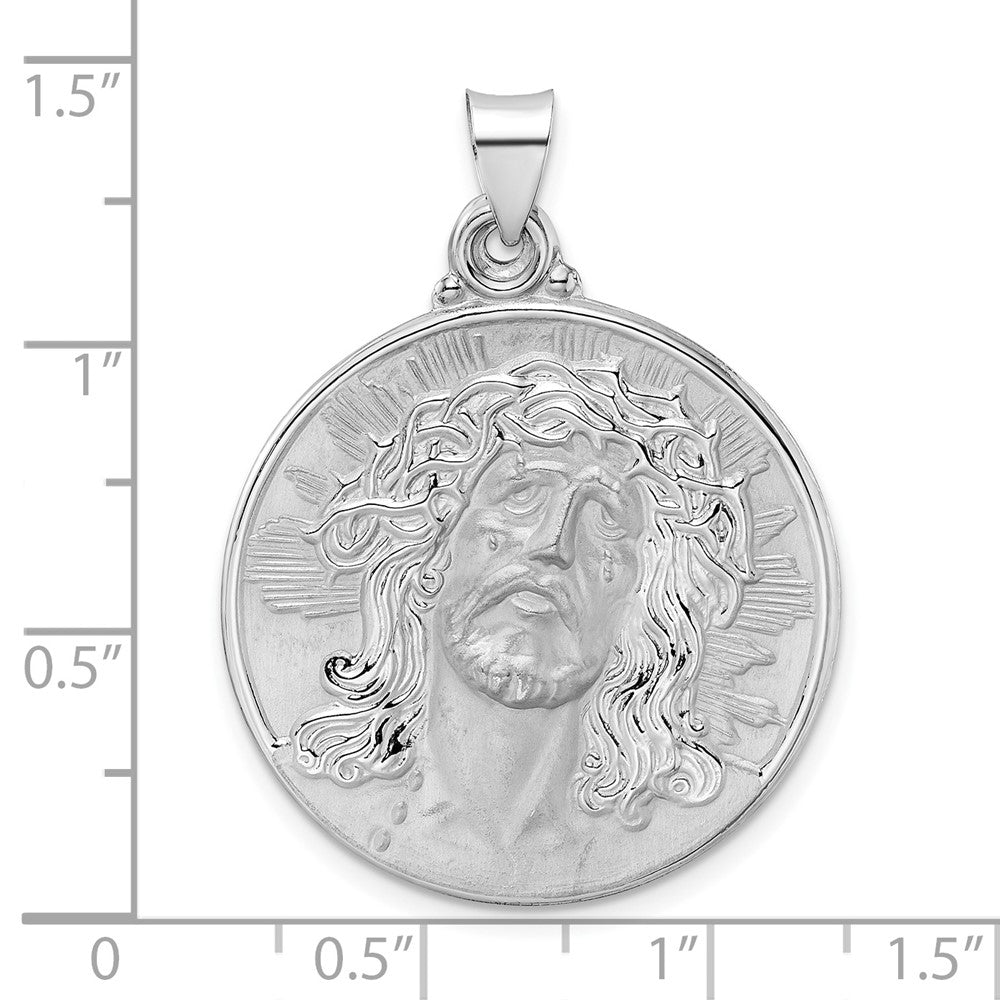 14k White Gold Polished and Satin Hollow Jesus Face Disc Pendant