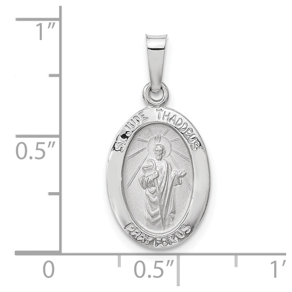 14k White Gold Polished and Satin Hollow Oval St Jude Thaddeus Medal